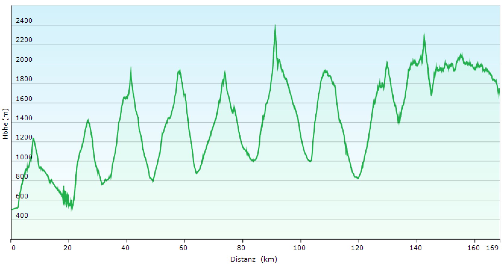 Höhenprofil - insgesamt 169km 11500m↑ 10200m↓