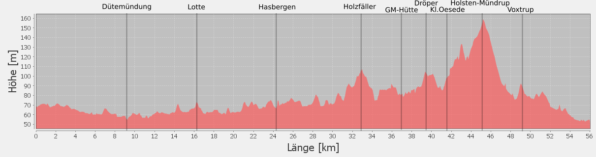 Von dort - Asphalt bevorzugend - der Düte entlang über Wersen, Lotte, Hasbergen, Holzhausen nach Georgsmarienhütte.