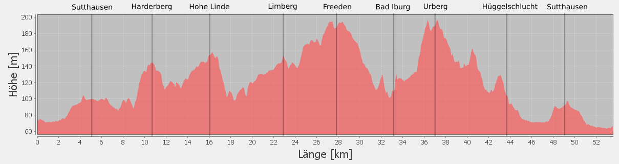 erreichen über Harderberg und die Hohe Linde Kloster Oesede, passieren Brannenheide und den Limberg,