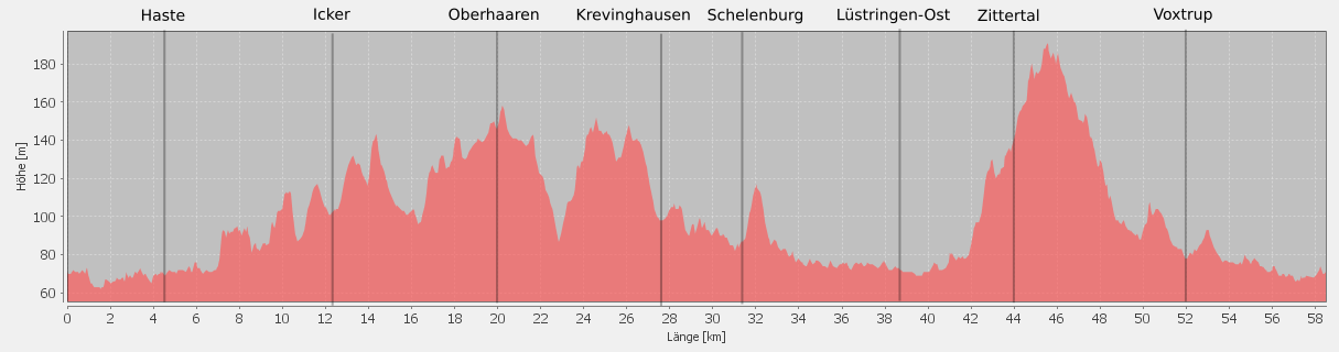 umfahren Wulften in einem weiten Bogen östlich. Weiter geht es an Schledehausen und Jeggen