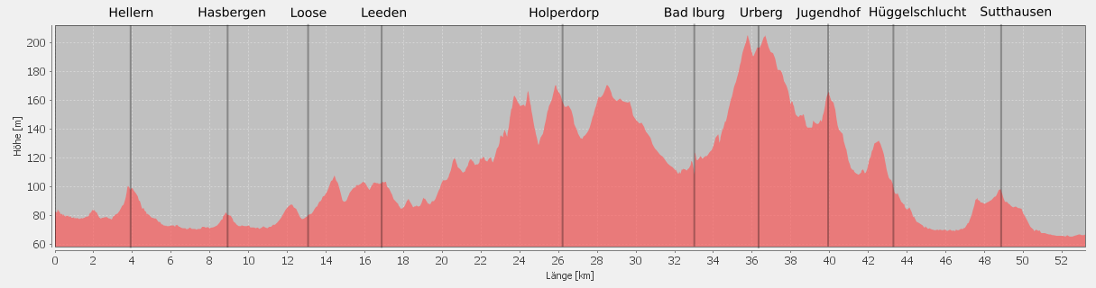 bergab durch die Schöppersiedlung, die Hüggelschlucht bis kurz vor Sutthausen.