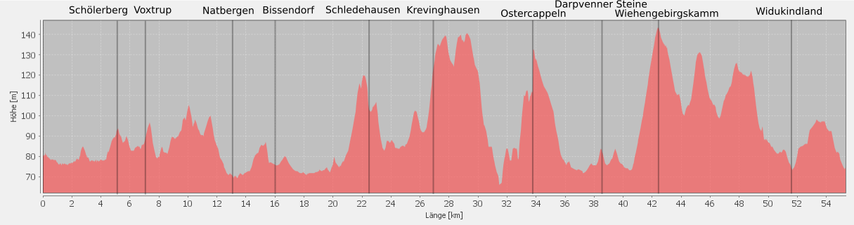 ziemlich direktem Weg über den Power Weg, Widukindland und die Gartlage nach Osnabrück zurück.
