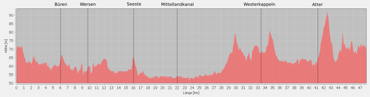 Zurück von Westerkappeln geht es im Prinzip nur über Wersen oder Atter.