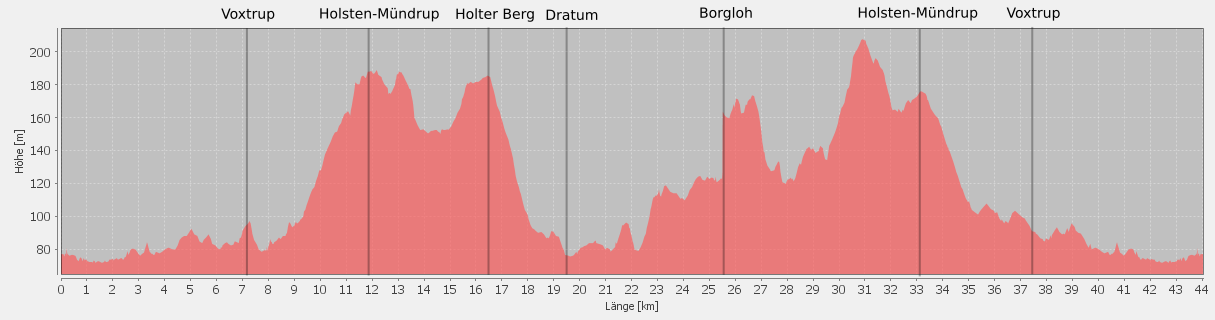 Für den Rückweg wählen wir die direkteste Route über Holsten-Mündrup und Voxtrup -