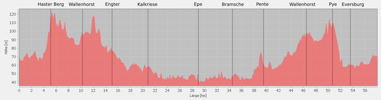 Zunächst geht es über Haste und westlich an Rulle vorbei nach Engter.