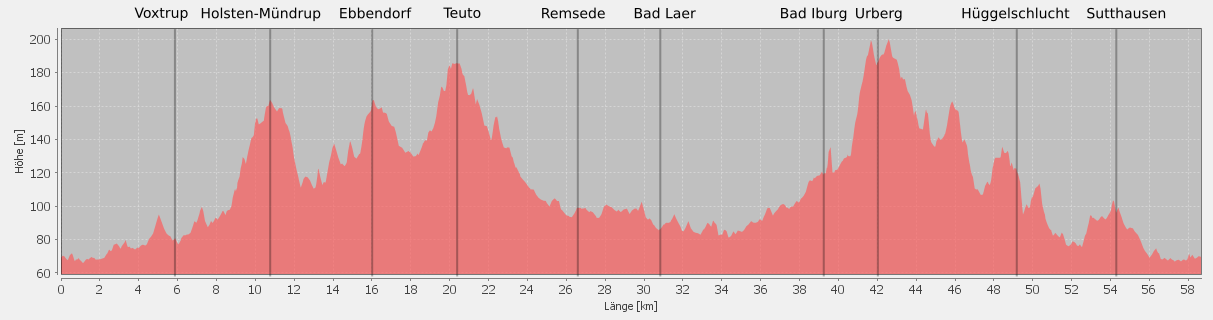 Kürzere Abfahrten und Anstiege über Achter de Welt, die Hüggelschlucht, Holzhausen und Sutthausen bringen uns