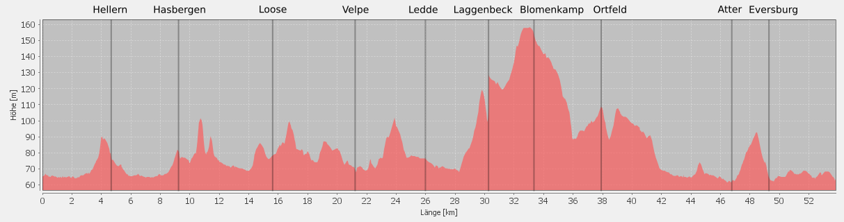 Es geht zuerst auf bekannten Wegen Richtung Westen über Hellern und Hasbergen,