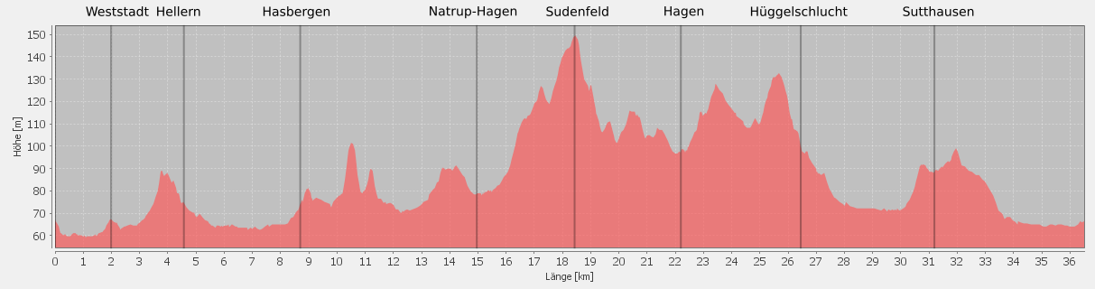 geht zügig durch die Hüggelschlucht und über Sutthausen nach Osnabrück zurück.