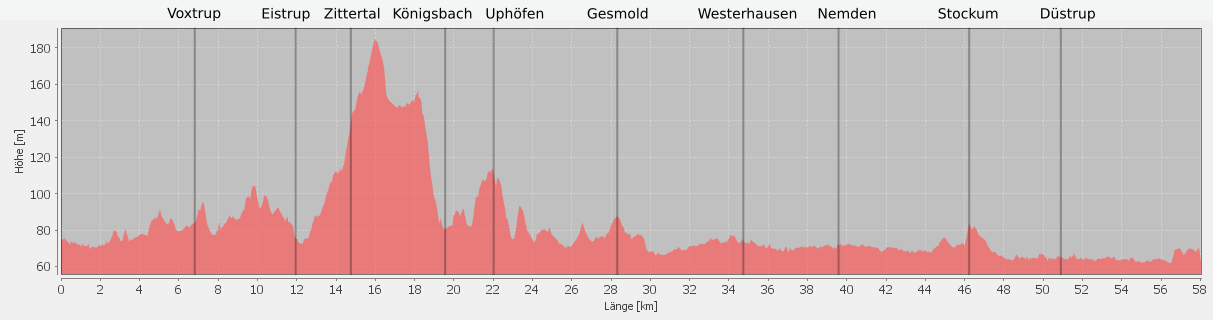 einen kleinen Schlenker über Uphöfen, bevor es wieder flach auf der L108 ein Stück Richtung Melle geht.