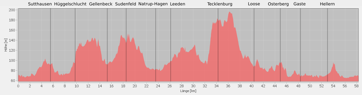 vom freundlichen Südwestwind geschoben – dennoch zügig über Loose, Osterberg, Gaste nach Osnabrück zurück.