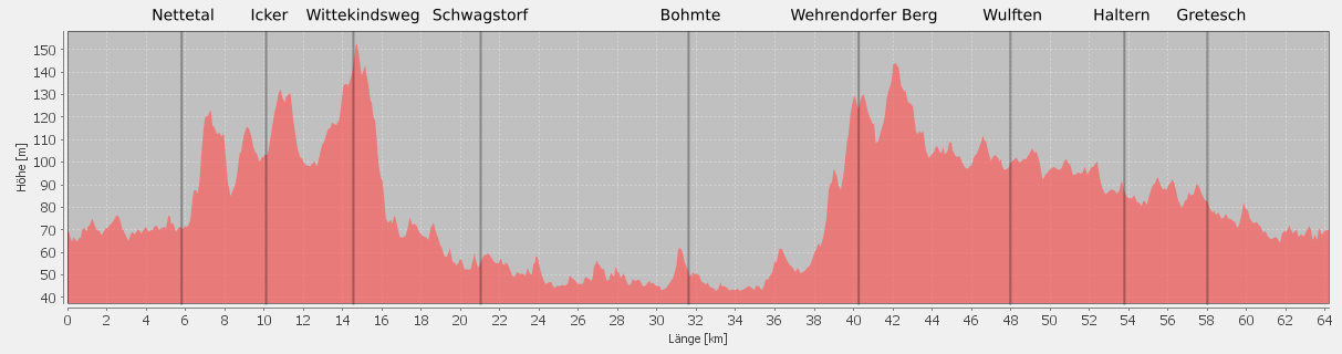 nach Icker und weiter an Vehrte vorbei hoch zum Kamm des Wittekindweges.