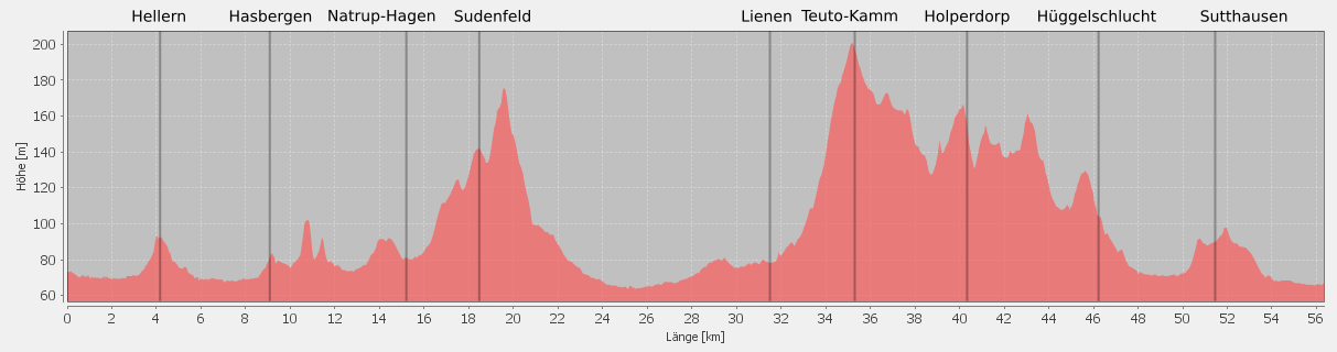 und Hasbergen, passieren dann Hüggel und Silberberg an ihren westlichen Ausläufern.