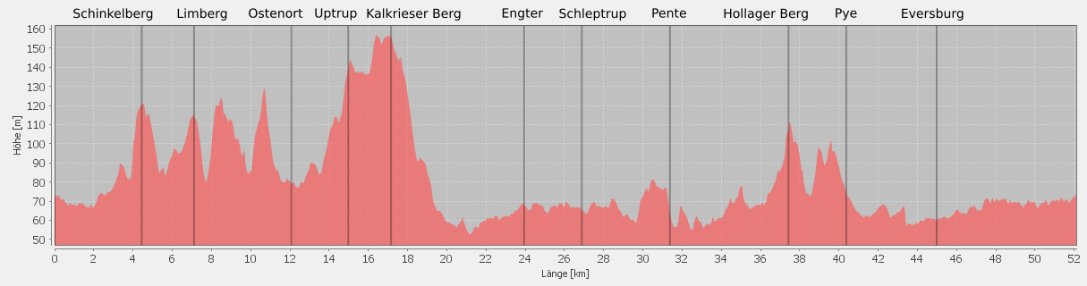 letzten kurzen Anstieg. Die Reststrecke ist wieder flach, an Pye vorbei erreicht man Eversburg