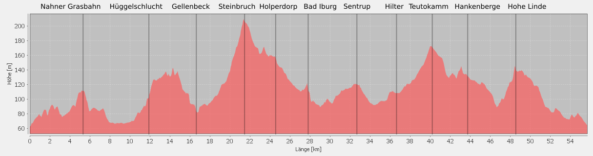 Südrand des Teuto, dort über Glane, Sentrup und Natrup nach Hilter.