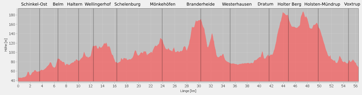 bergab, dann ist es ab Westerhausen flacher, die Hase-Niederung wird gequert.