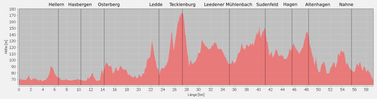 Die heutige Runde führt westwärts aus der Stadt, über Hellern, Hasbergen und Gaste wird die erste