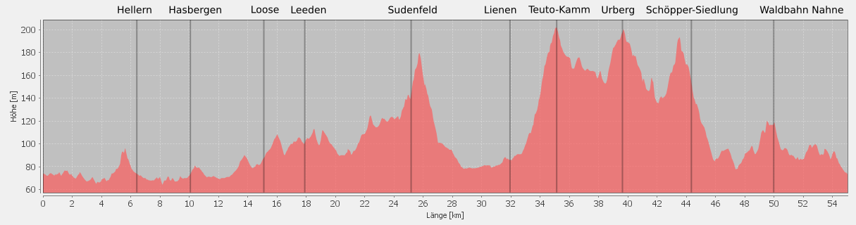 Nun führt die Tour am Nordrand des Teuto entlang bis Sudenfeld.