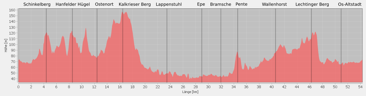 Mittellandkanal und in kurzem Anstieg auf die Penter Egge.