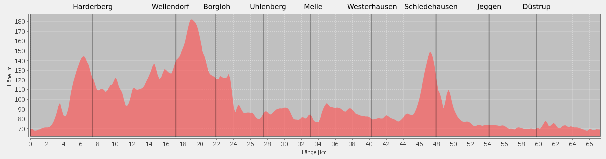 bewältigen die ersten Höhenmeter am Harderberg. Weiter wellig geht es über Wellendorf, Borgloh