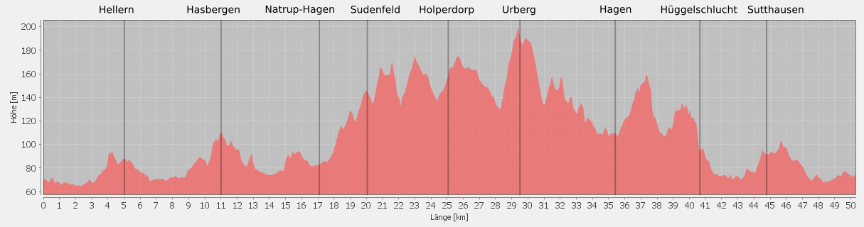 Richtung Hüggel bis kurz vor Hasbergen, umfahren den Ort und durchfahren das Umland