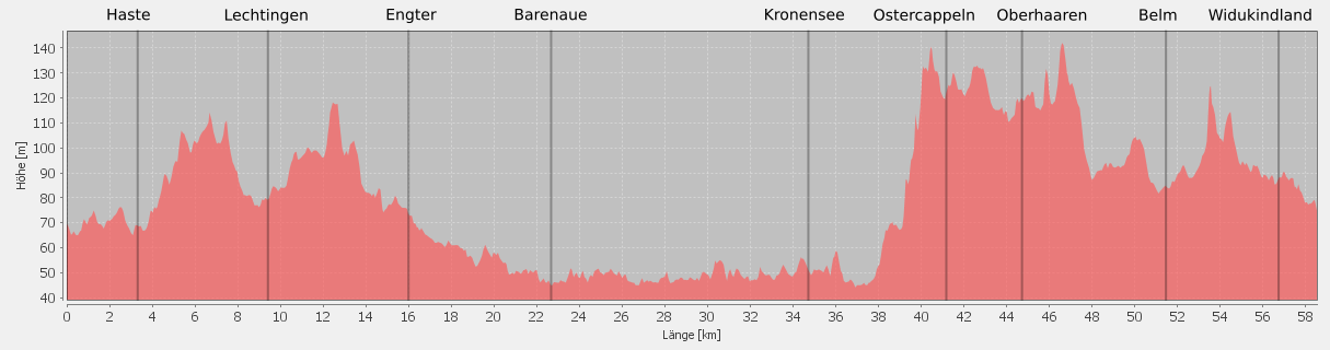 Wir verlassen Osnabrück in Richtung Haste, queren bei Rulle die Autobahnbrücke und erreichen auf einem nicht so schönen Radweg Engter.