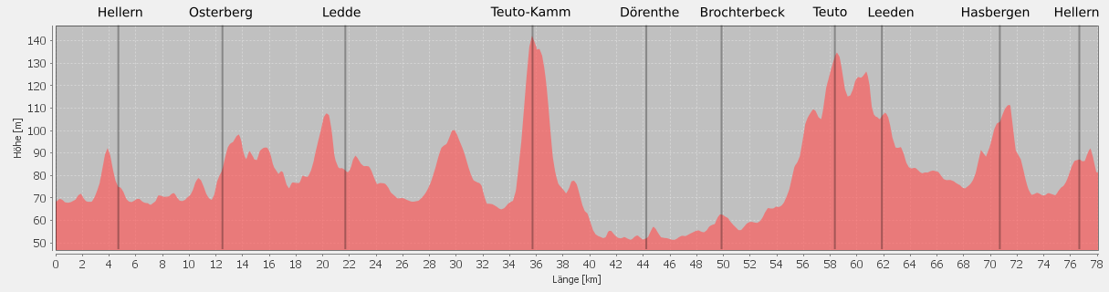 Hier kommt der einzige nennenswerte Anstieg: die Überquerung des Teutoburger Waldes.