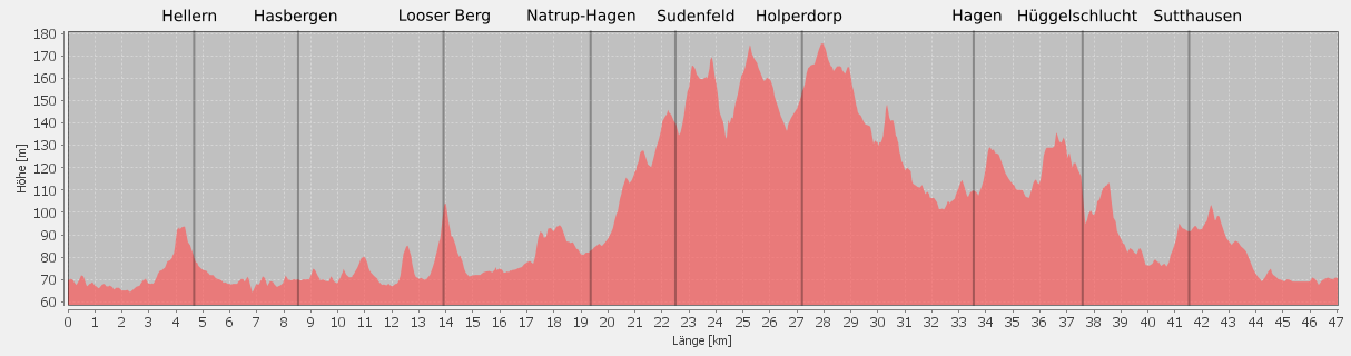 Wüste und über Hellern nach Hasbergen. Dort wenden wir uns westwärts, fahren