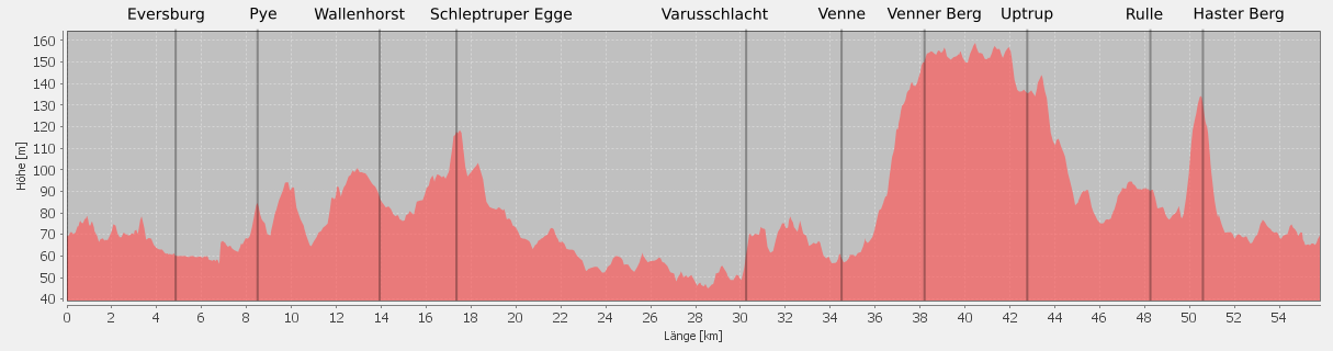 Zweimal überqueren wir den Mittellandkanal und fahren in Kalkriese am Park und Museum Varusschlacht vorbei.