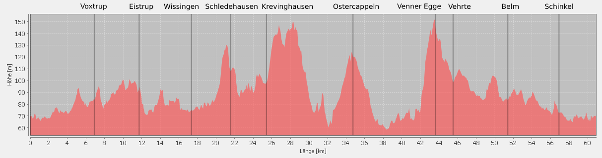 rasant bergab nach Vehrte, schließlich über Belm und Gretesch in die