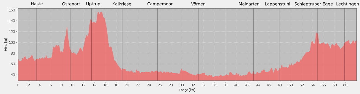 Dort geht’s nach links und schließlich über Lappenstuhl, Engter und Wallenhorst nach Osnabrück zurück.