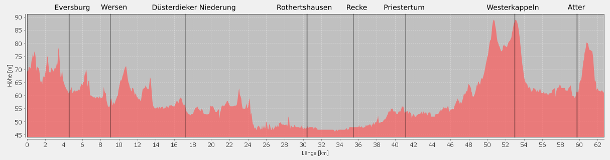 Mettingen und Westerkappeln. Diese verlassen wir wieder und fahren südlich an
