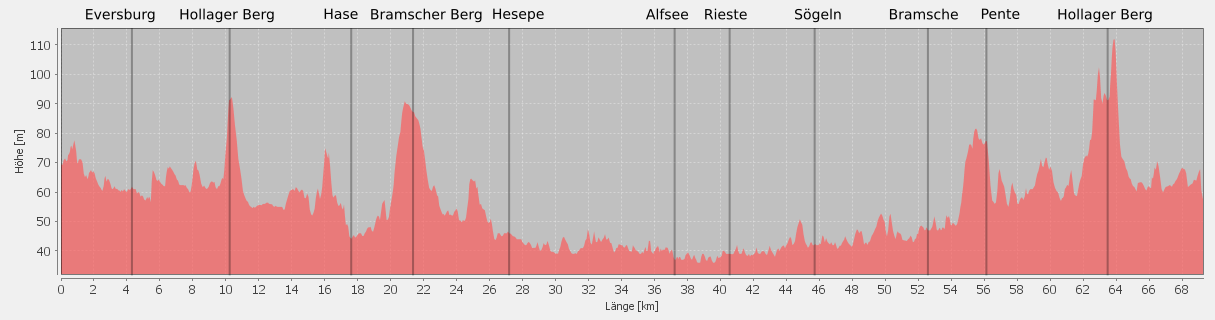 Von dort fahren wir durch den Penter Wald, queren den Mittellandkanal und umfahren Bramsche in einem großen Bogen.