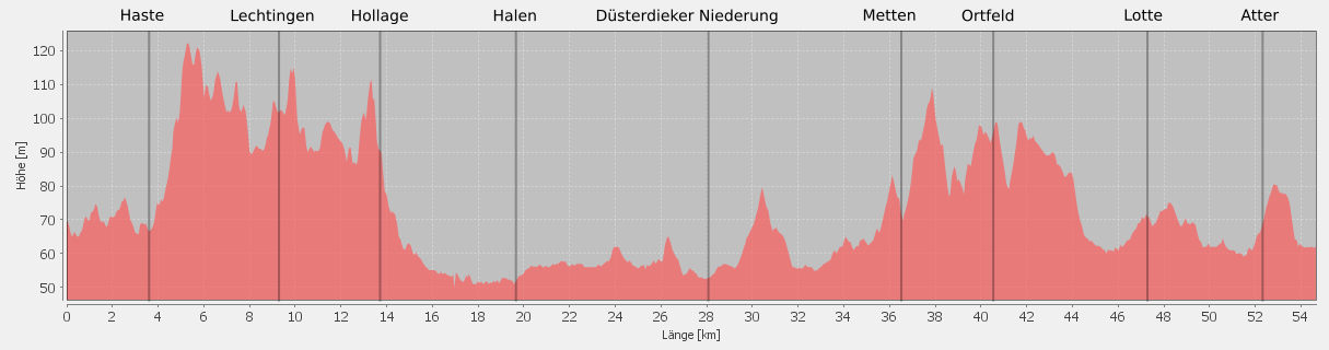 Zunächst geht es nordwärts, über Haste und Lechtingen bis ins Hollager