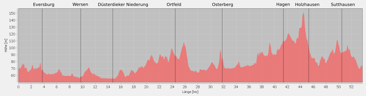rechts ab. Bei Malbergen fahren wir zwischen Wulfter Holz und Harderberg hindurch Richtung