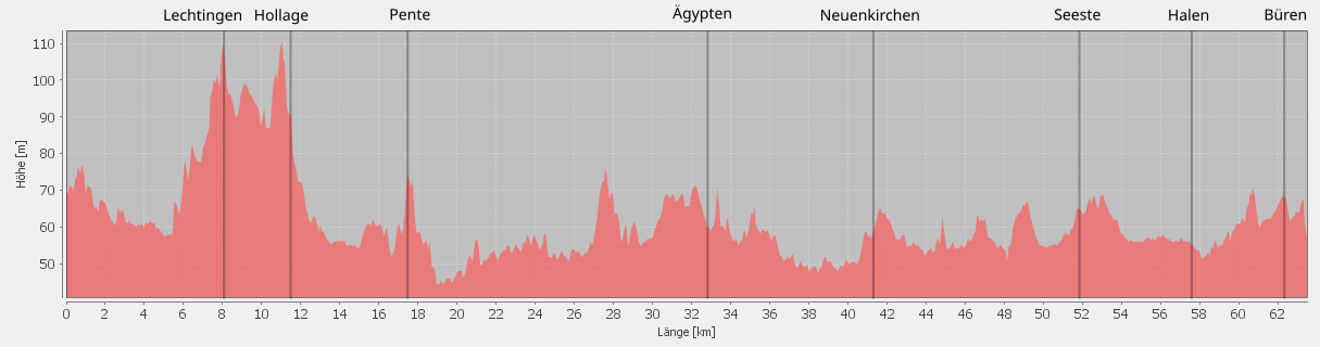 Wir verlassen Osnabrück über Pye, umfahren Hollage und bewegen uns weiter in Richtung Mittellandkanal bei Pente.