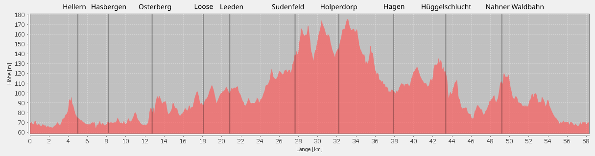Hasbergen, Gaste, Osterberg, haben da den Wind voll im Gesicht. Über Loose und Leeden radeln