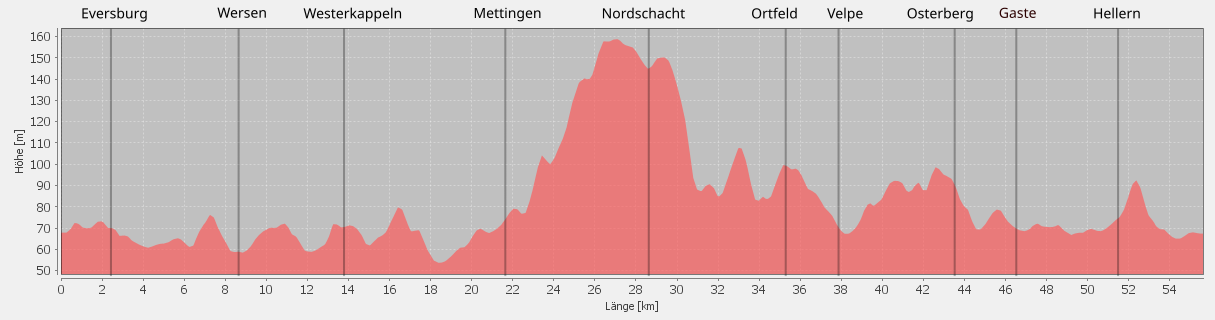 den Startpunkt nord-westlich. Wir fahren, so gut es geht, direkt Richtung Mettingen , streifen