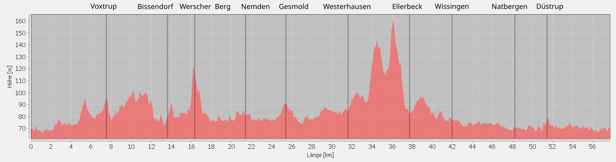 Wir verlassen Osnabrück durch die Stadtteile Kalkhügel, Schölerberg und Voxtrup,