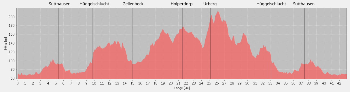 – auf und biegen zum Urberg ab. Passieren Achter de Welt und radeln östlich