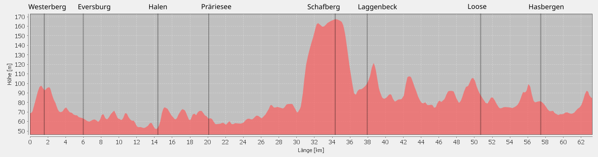 den Roten Berg überqueren und erreichen Hasbergen und einige Kilometer später