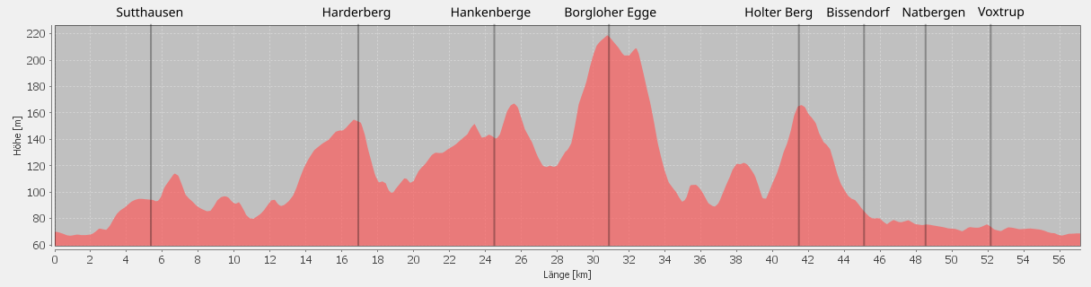 Kilometern sind Anstiege zur Borgloher Egge und zum Lohnberg zu meistern. Wir werden