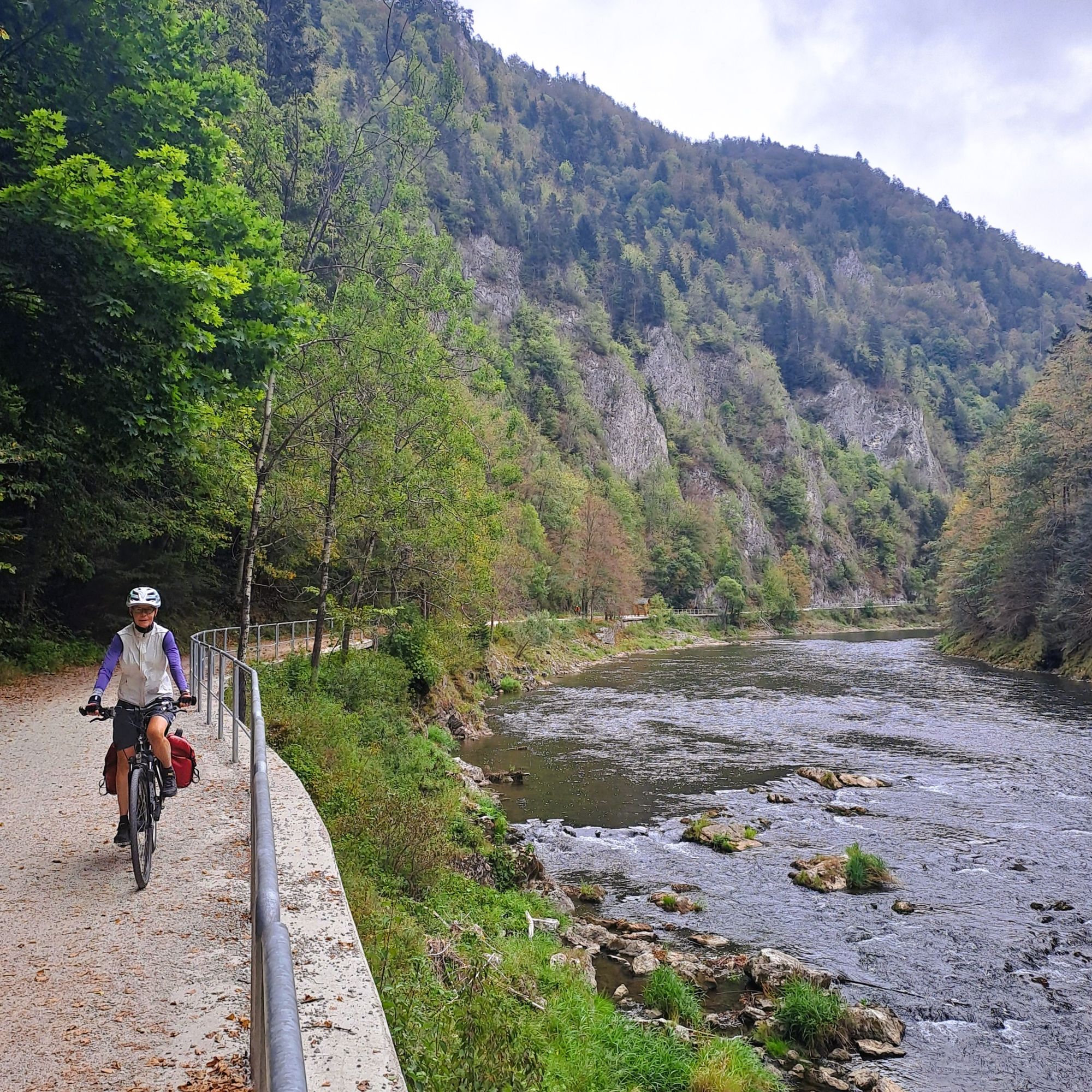 Wir wählen die orografisch rechte, wo uns ein schön ausgebauter Radweg erwartet – allerdings