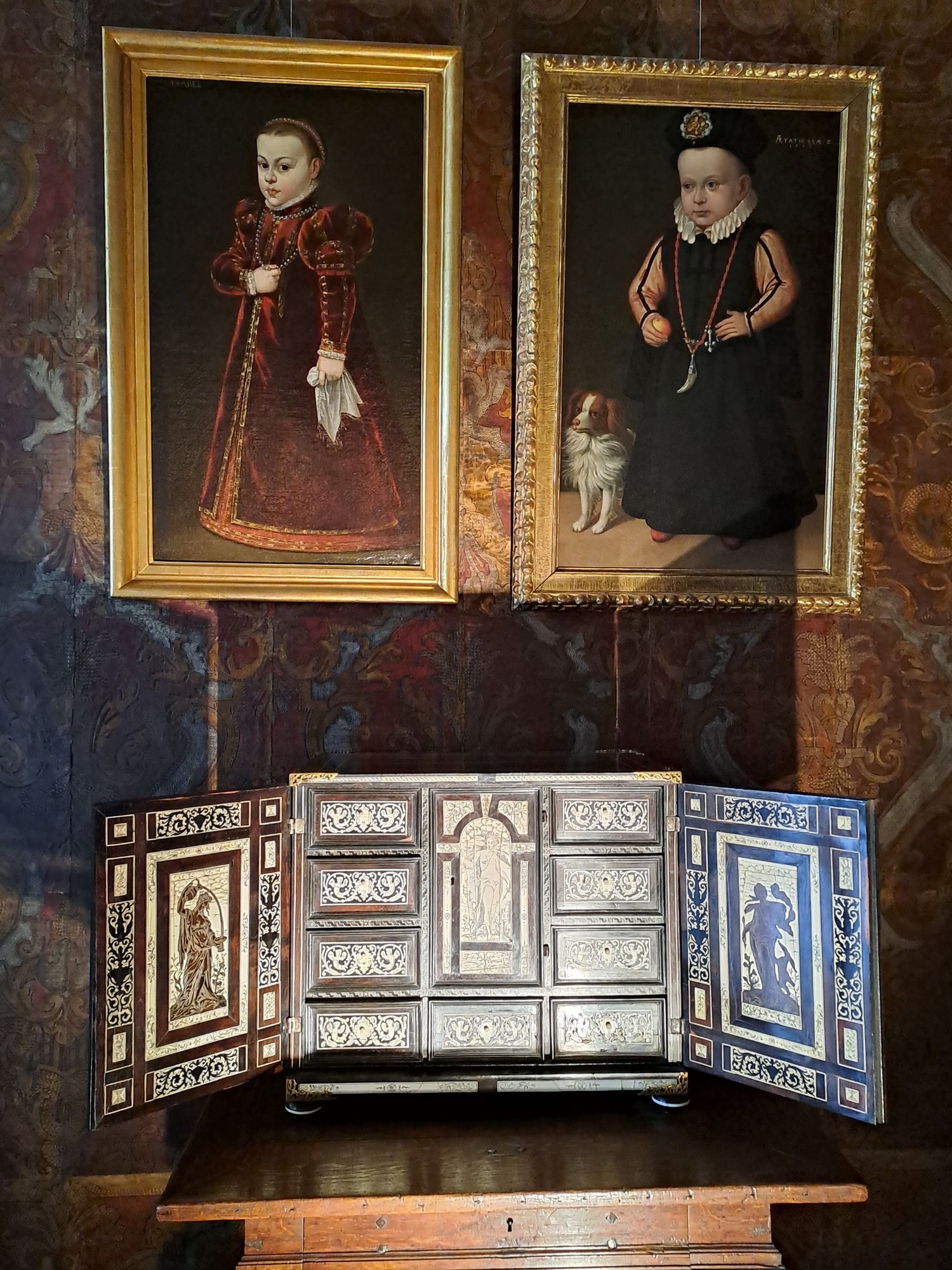 Oben empfängt uns ein holzgeschnitzter Heiliger Hubert, dessen Bedeutung sich uns –